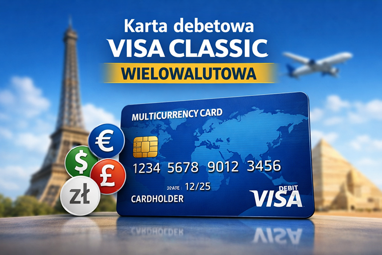 Dodatkowo, możliwość podpięcia do karty rachunków walutowych (EUR, USD, GBP), dzięki czemu dokonując transakcji w tych walutach Klient nie ponosi żadnych kosztów związanych z przewalutowaniem – karta rozpoznaje w jakiej walucie jest transakcja i obciąża bezpośrednio rachunek w walucie transakcji.
